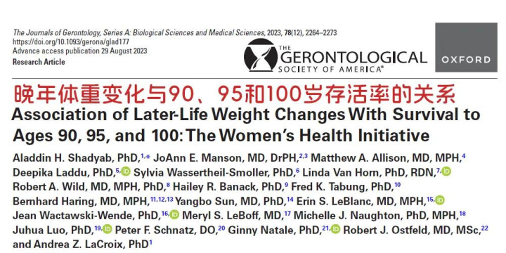 ④Association of Later-Life Weight Changes With Survival to Ages 90, 95, and 100: The Women’s Health Initiative. The Journals Of Gerontology: Series A. doi: 10.1093/gerona/glad177